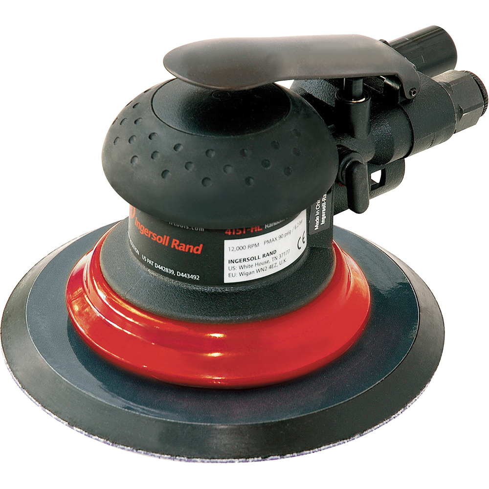 The 4151-5 Ingersoll Rand 5” Vinyl Pad Random Orbital Air Sander, 12000RPM is a vacuum-ready, low-vibration air sander that produces an ultra-high quality finish on every job. Extracting dust and particles through and around the pad, this tool keeps foreign matter away from the motor to ensure smooth operation.